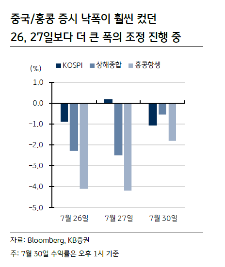 이에 대해 KB증권은 먼저 중국 정부의 기업 규제 여파가 지속되고 있다고 판단했다. 지난 24일 중국 정부가 강력한 사교육 시장 규제 조치를 발표하면서 지난 26일 이후 기술·교육·부동산·바이오 등 분야를 중심으로 중국 본토, 홍콩, 미국 증시에 상장한 중국 기업들의 시가총액이 700조원 넘게 증발했다. 이 같은 규제 이슈가 완전히 해소되지 않는 상황에서는 외국인 자금이 신흥국 증시에서 계속 이탈할 것이라는 분석이다.