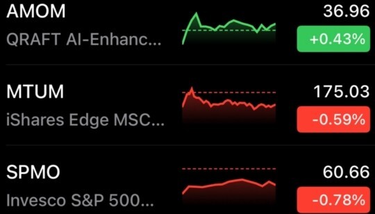 그래프> 美 주식 모멘텀 전략 ETF 수익률 비교