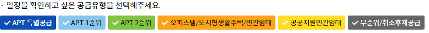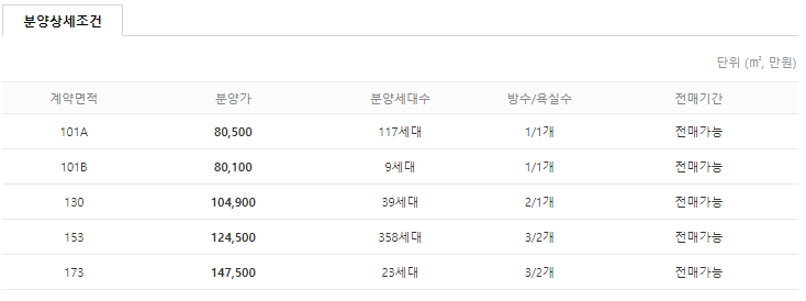 - 총 5개군으로 나뉘어 진행된다. 청약 신청은 군별로 1건씩 청약 접수가 가능해 1인 기준 최대 5건의 청약이 가능하며, 200만원의 청약 신청금이 각각 필요하다. 단, 동일인이 동일군에 중복 청약은 할 수 없다.